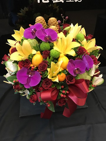 紅蝴蝶蘭紅玫瑰桌上盆花