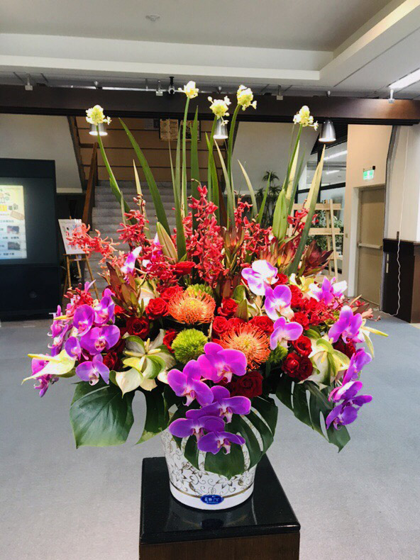 紅蝴蝶蘭紅玫瑰桌上盆花